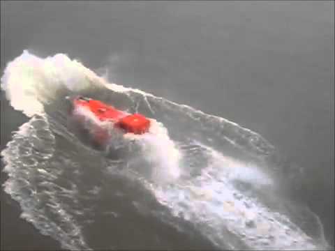 The only one crew member was inside. As a result – dis-balance of lifeboat and salto-mortale.